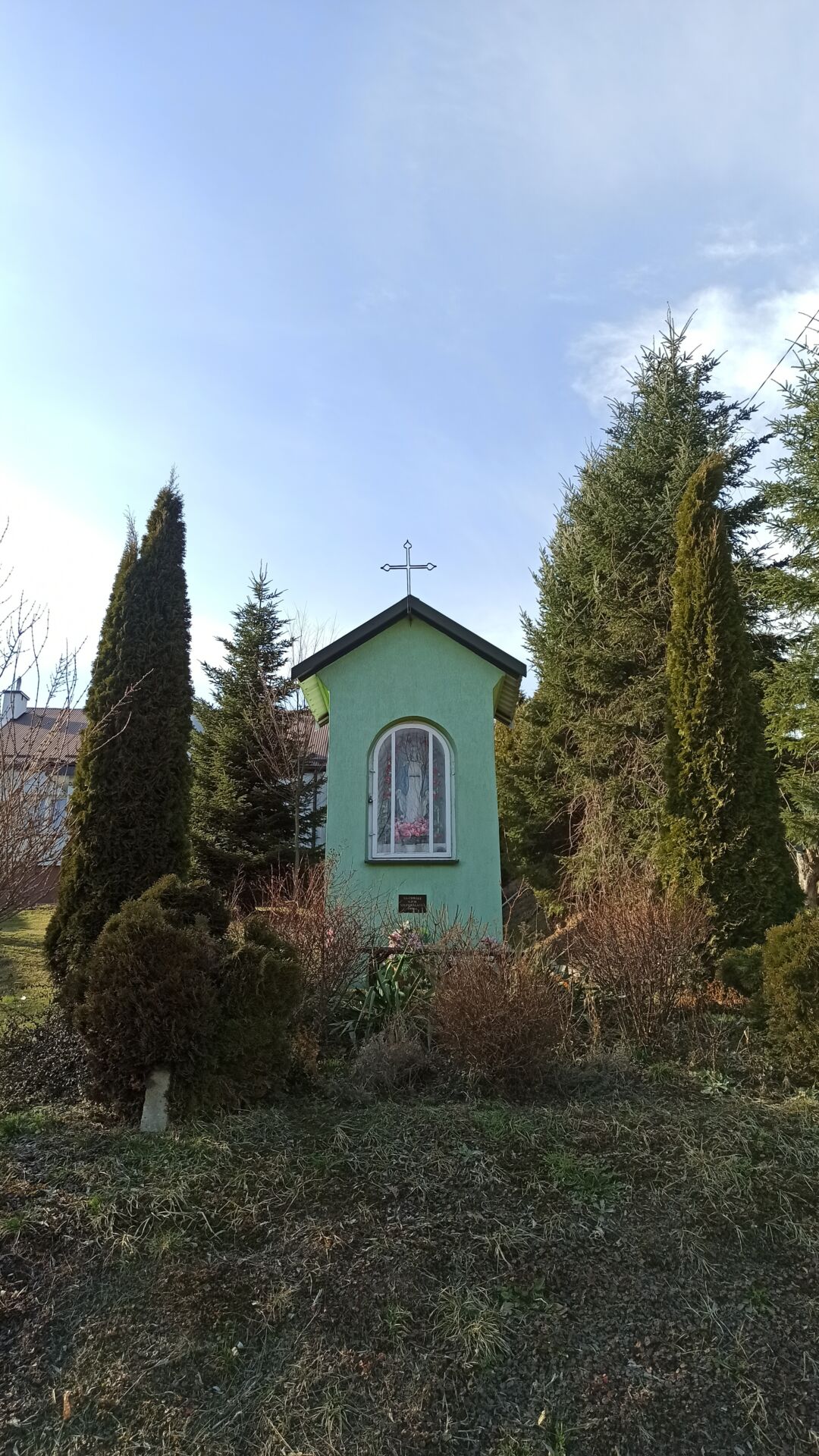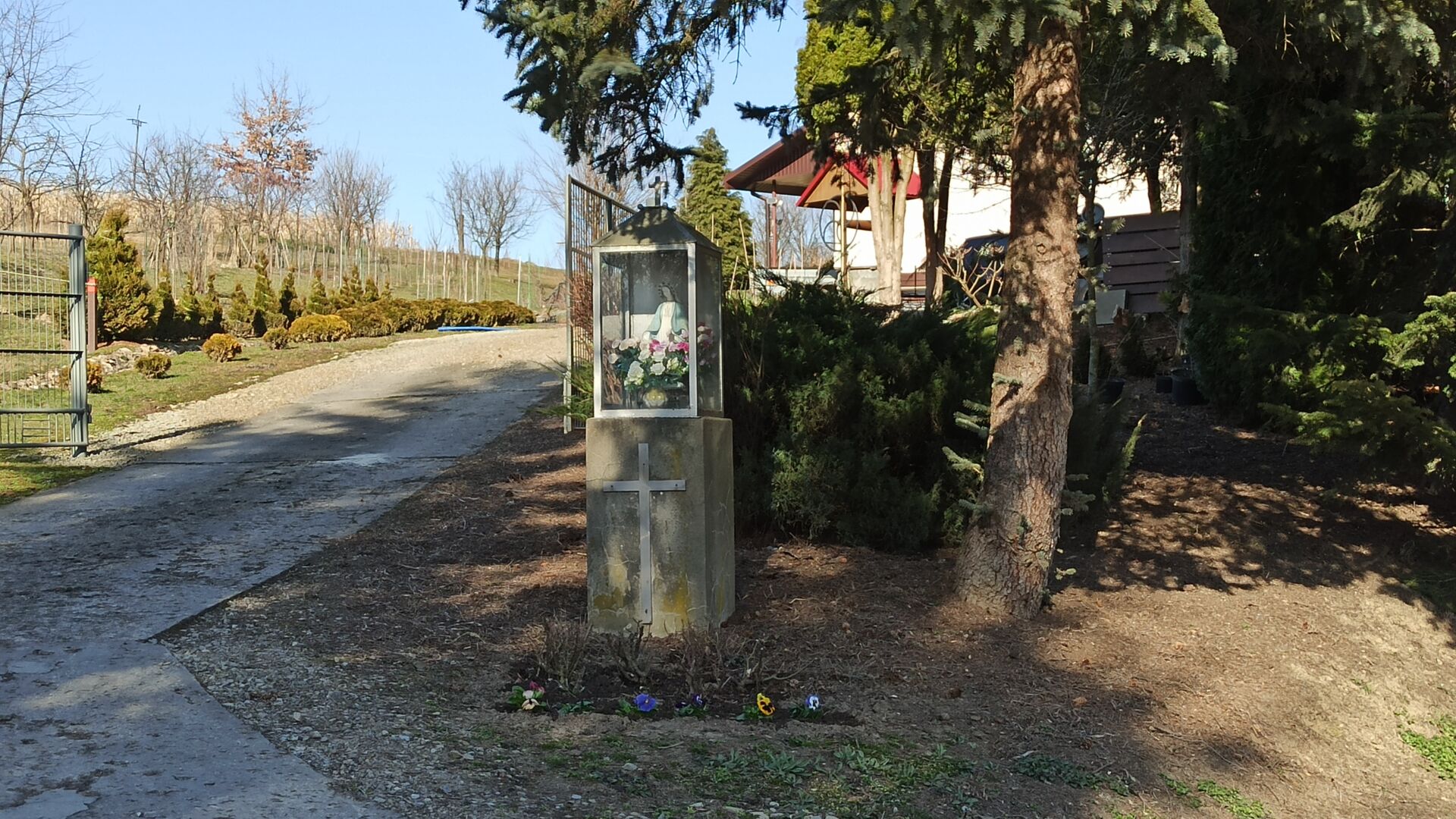 Od kapliczki idziemy pod lekkie wzniesienie, mijamy kopalnię gazu w Jodłówce i kierujemy się do Sanktuarium Matki Bożej Pocieszenia.