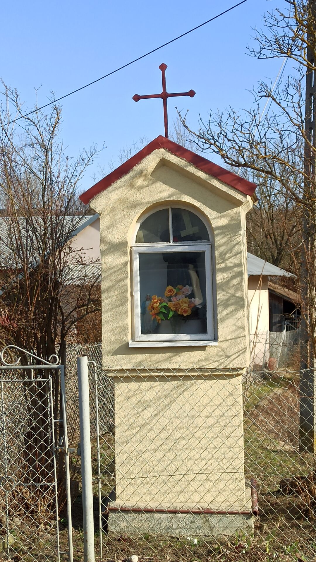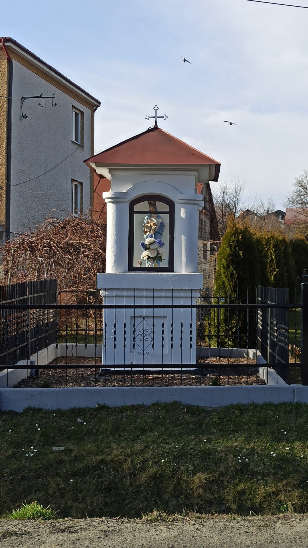 Od krzyża idziemy ul. Widokową, na skrzyżowaniu idziemy prosto w kierunku Jodłówki. Po drodze mamy kapliczkę Matki Bożej, przy której możemy chwilę odpocząć. Następnie idziemy asfaltową drogą w kierunku Szkoły Podstawowej w Jodłówce i dalej ku kapliczce Jezusa Frasobliwego.