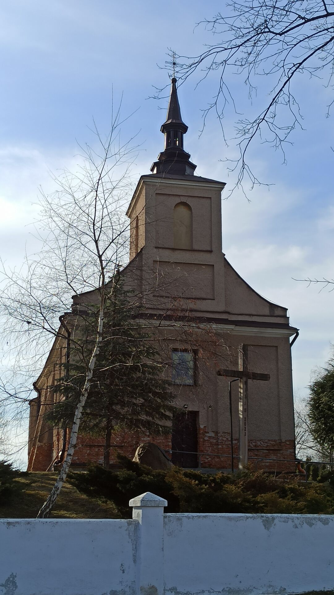 Podążamy za drogą główną. Kościół będziemy mieć po prawej stronie, na lekkim wzniesieniu.
